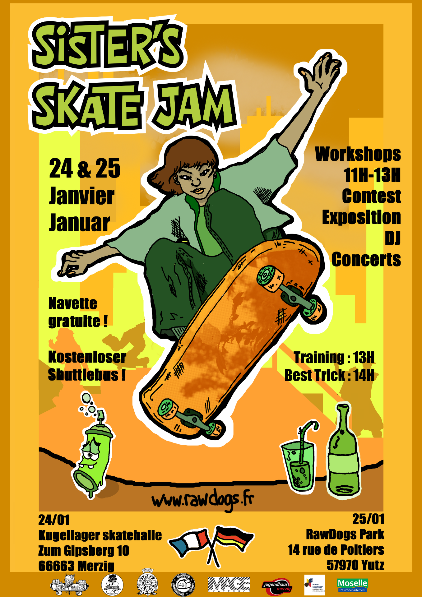 Merzig in Deutschland und in Yutz in Frankreich den Sister's Skate Jam.